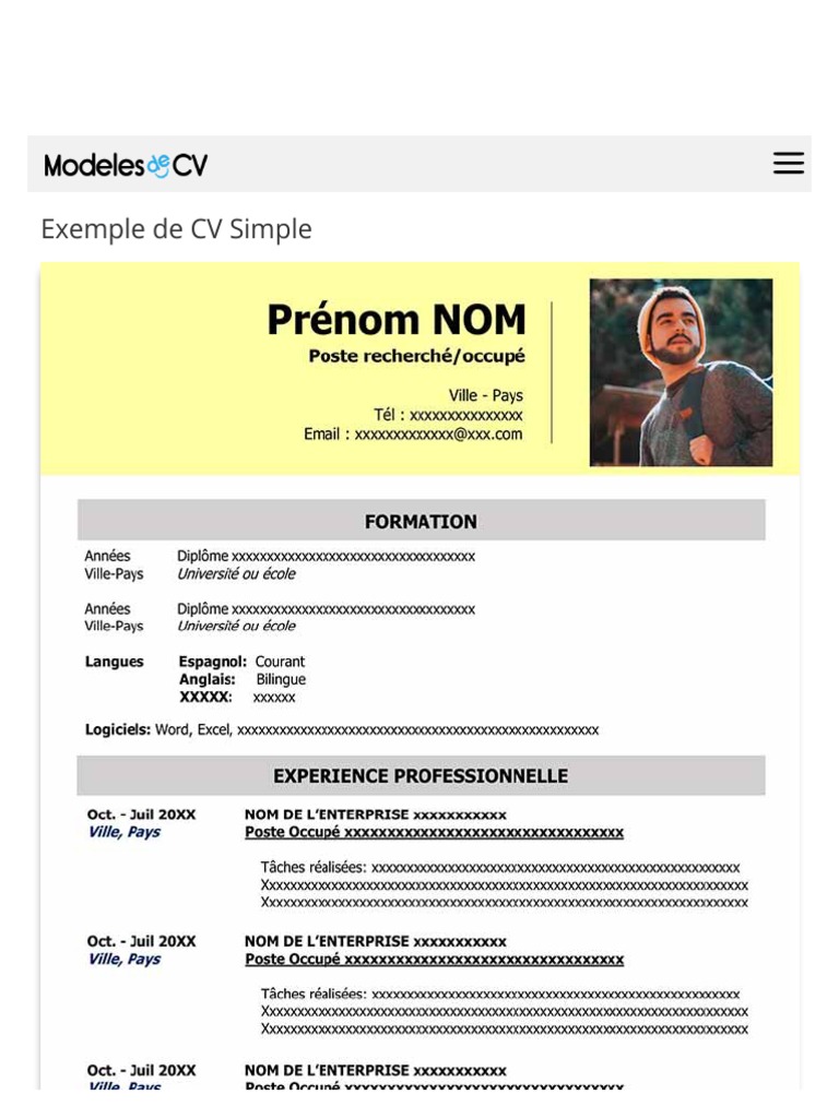 Exemple De Cv Simple Page 1 Line 17qq Com - Cv (curriculum vitae) signifie en latin carriere de la vie.